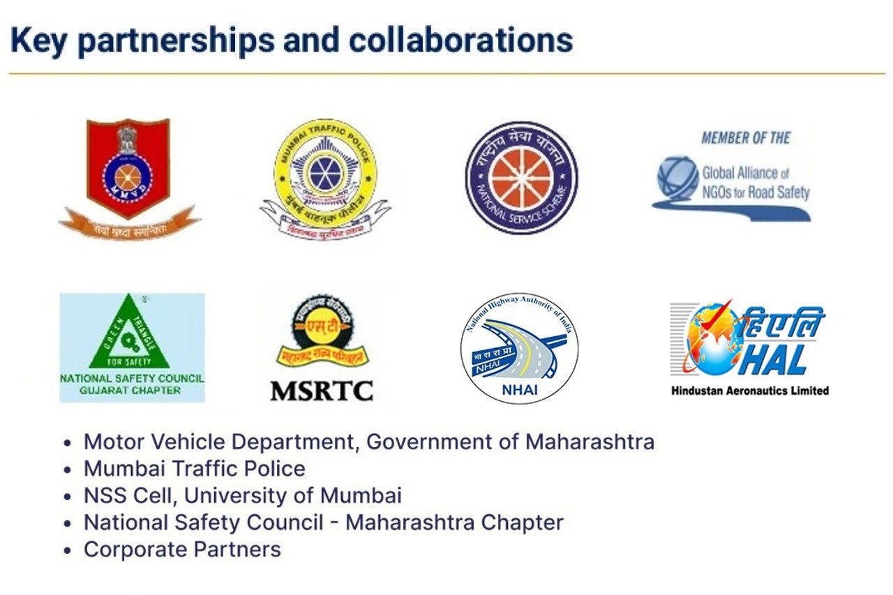faculty in the government institutes, the NGO is able to reach out to a cross section of government officials working all over Maharashtra and orient them to think about doing something concrete for road safety in their respective